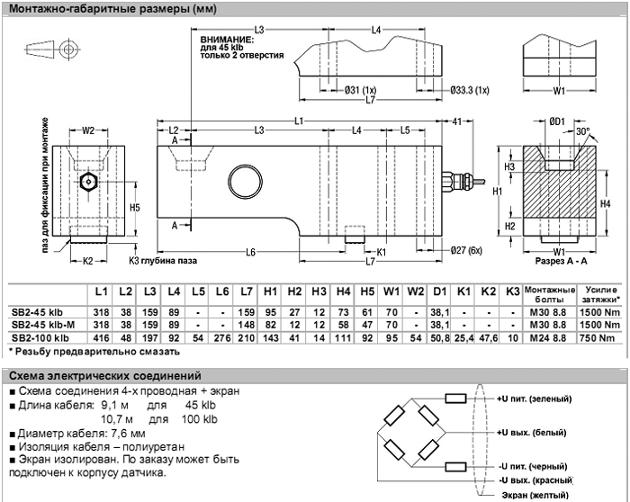 | Номинальная нагрузка (E max.) | lb | 45000 / 100000 | ||