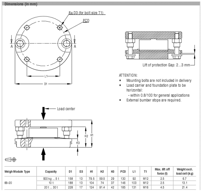 Весовой модуль 66-20 разработан для применения в пищевых и фармацевтических производствах. Конструкция, выполненная полностью из нержавеющей стали с электрополировкой поверхностей и гигиеническим дизайном, делает этот весовой модуль идеально подходящим для использования на производственных объектах с технологиями CIP (Clean-In-Place / Циркуляционная мойка без демонтажа оборудования) и SIP (Sterilization-In-Place / Дезинфекция без демонтажа оборудования), с возможностью универсального, компактного и экономичного применения вкупе с широкой гаммой тензометрических датчиков на сжатие (грузоподъёмность тензодатчиков от 500 кг до 30000 кг)